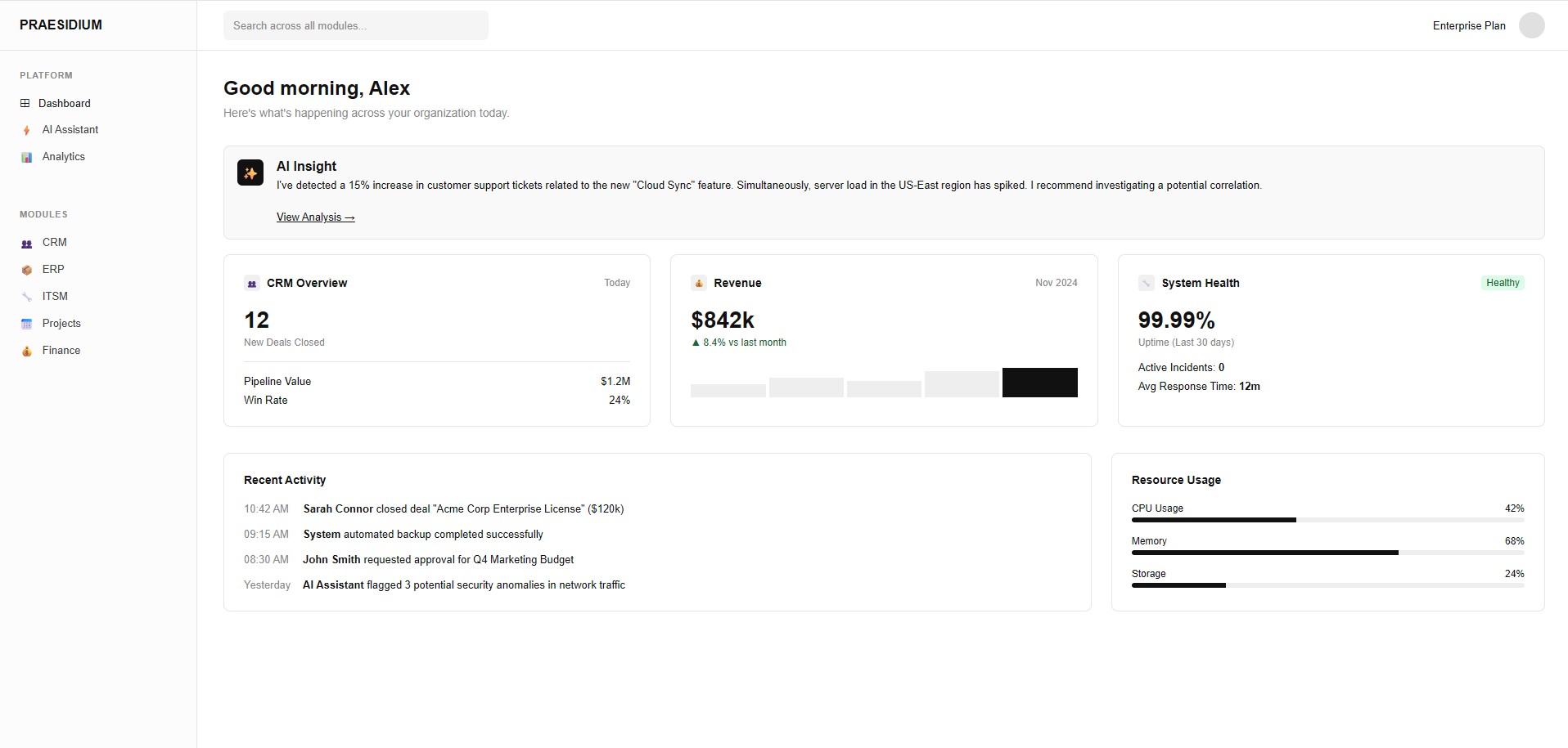 Experience the future of enterprise management. Our AI-native platform unifies your entire operation into a single, intelligent ecosystem that thinks as fast as you do.